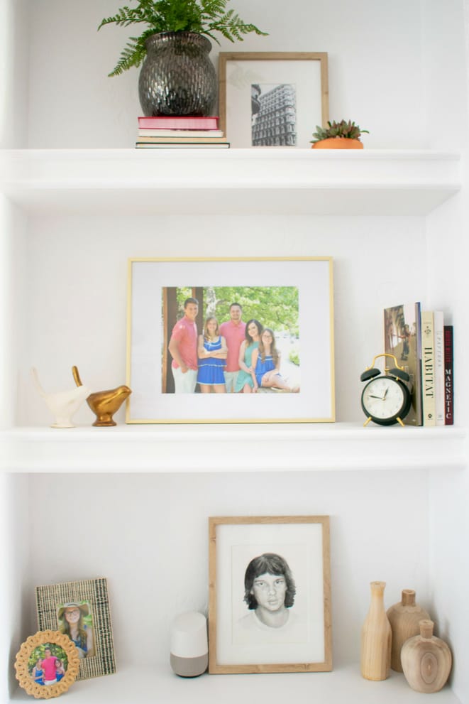 Be sure that you gather a good mix of items in different size, heights and textures before you begin. You want the built-ins to feel interesting and full of life instead of boring because everything is the exact same height.